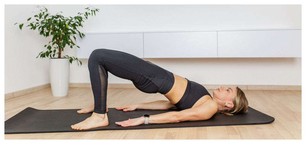 Deze oefening zorgt voor bloedsomloop en helpt het lichaam in de rust- modus te komen. Je ligt op je rug met je benen tegen de muur