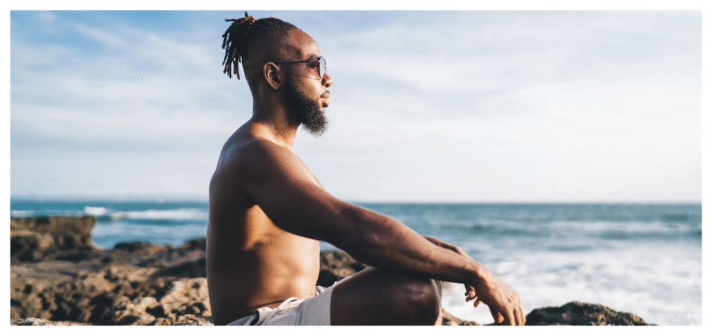 In kleermakerszit, met focus op je ademhaling, breng je aandacht naar binnen. Dit is ideaal om meditatie te combineren met zachte ademhalingsoefeningen